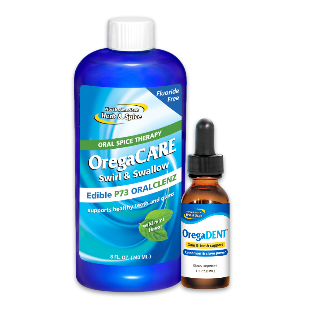Mint OregaCARE Swirl & Swallow Mouthwash is the only edible oral cleanser that provides the power of P73 oregano. Now you can promote the health of teeth and gums without the use of harmful substances like fluoride and other chemicals. Plus, it helps the whole body. As a mouth cleanser and body tonic, its good for your health and saves you money. OregaCARE Swirl & Swallow is one component of a family of products that supports the teeth, gums and breath with oral spice therapy. OregaCARE Swirl & Swallow is ideal for use with OregaFRESH P73 toothpaste and OregaDENT in supporting an oral system based on the powers of wild nature.